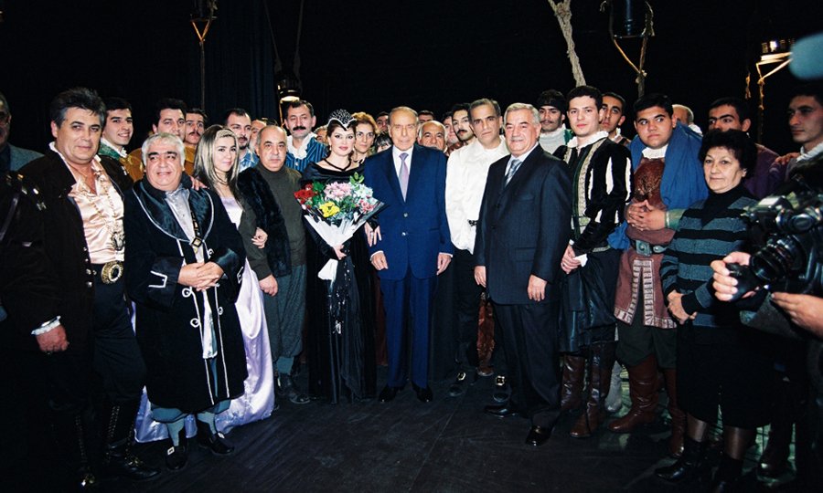 Mədəniyyətimizin böyük hamisi Heydər Əliyev teatr sənətinə xüsusi diqqət ayırırdı. Dövlət rəhbərliyində olduğu bütün dövrlərdə, özəlliklə də müstəqil Azərbaycana prezidentliyi zamanı gərgin iş qrafikindən, bir gündə bəzən bir neçə rəsmi görüş və toplantılardan vaxt tapdıqca teatra da gedir, yeni tamaşalara baxırdı. Hər tamaşadan sonra da adəti üzrə səhnə arxasına keçərək yaradıcı heyətlə səmimi atmosferdə görüşər, fikirlərini bölüşər, sənət adamlarının qayğıları ilə maraqlanar, onların da fikirlərini dinləyərdi.