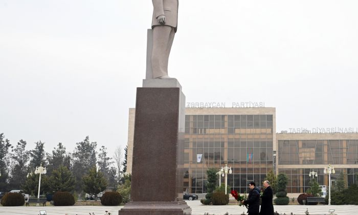 Qəbuldan əvvəl nazir və Ucar Rayon İcra Hakimiyyətinin başçısı Mənsur Məmmədov Ümummilli Lider Heydər Əliyevin Ucar şəhərində ucaldılmış abidəsi önünə çiçək dəstəsi qoyaraq əziz xatirəsini ehtiramla yad ediblər.
