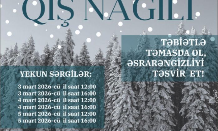 Xətai Sənət Mərkəzində “Təbiətlə təmasda ol, əsrarəngizliyi təsvir et”! şüarı altında keçirilən və böyüməkdə olan nəsli təbiətlə təmasa sövq etmək, fərqli fəsillərdə təbiətin əsrarəngliyini göstərmək və mühafizəsinə həvəsləndirmək məqsədi daşıyan “Qış nağılı” adlı yaradıcılıq sərgiləri açılıb.