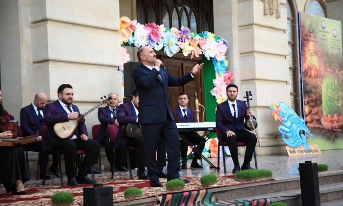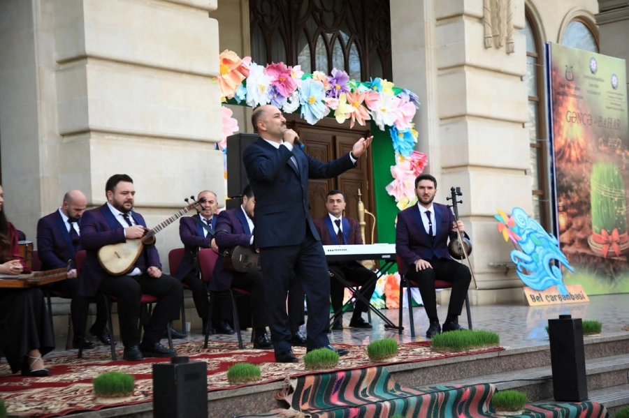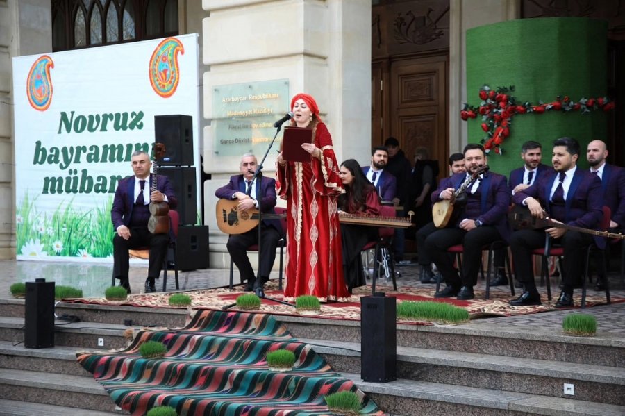 Gəncə Dövlət Filarmoniyasının qarşısındakı meydanda musiqi kollektivlərinin çıxışları olub. Milli adət-ənənələri əks etdirən səhnəciklər, zorxana idmanı nümayişi də maraqla qarşılanıb.